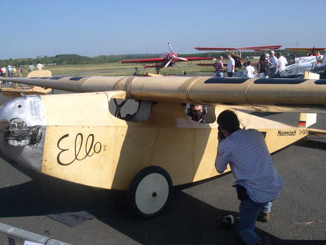 Ich bewundere immer wieder die zeitlose Eleganz dieser Maschinen, die meist auch schon 70 Jahre auf dem Buckel haben. Was gibt es Schöneres, als den Möven-ähnlichen Knickflügel eines Rhönbussards oder eine wohlgeformte Olympia Meise? Gleich daneben doch 70 Jahre jünger, stehen die neuen Superorchideen, die hier in Darmstadt bei der Akaflieg aus Kohlefasern, Epoxydharzen und anderen Flüssigkunststoffen gebaut werden.