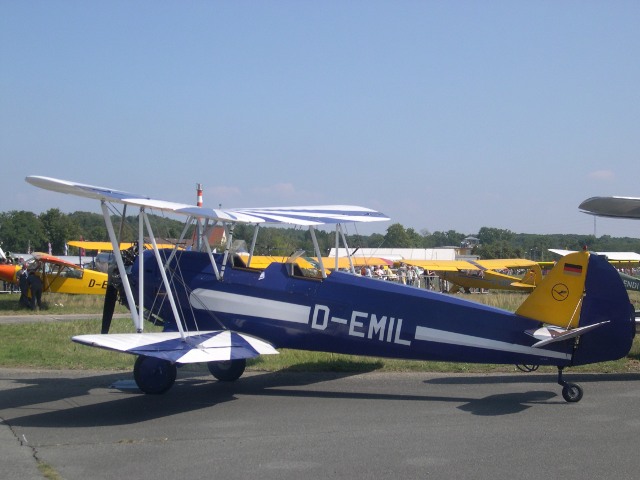 Die nächsten Gäste schweben ein, wieder sind es Messerschmitt Bf 108, die Traditionsmaschine der Lufthansa, die Elly Beinhorn und die im strahlenden Messerschmitt-blau leuchtende Maschine aus Bad Nauheim, für mich die schönste 108, weil sie das ist, was sie eigentlich sein sollte, ein zeitlos elegantes Reiseflugzeug. Und das, obwohl die alte Dame schon 62 Jahre auf dem Buckel hat. Es wird wieder unruhig, die Ju hat abgehoben und ein neuer Besucher nähert sich im langsamen Sinkflug der Landebahn. Er scheint förmlich in der Luft zu stehen, dann setzt er auf und nach 50 m hat er bereits ausgerollt. Der Fieseler Storch hat wieder einmal gezeigt, was STOL wirklich bedeutet. Ich lasse mich in der Menschenmenge treiben, es müssen Tausende sein.